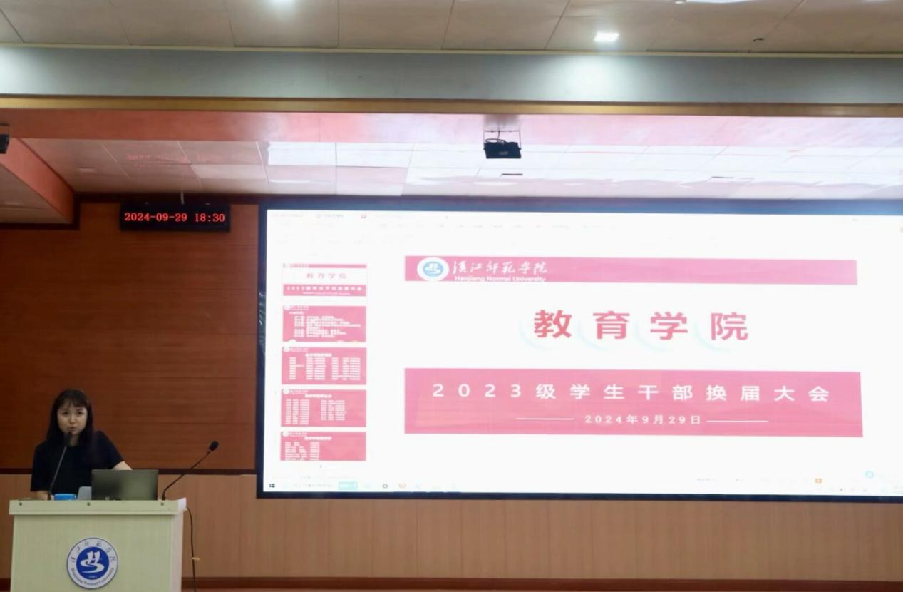 22级员工干部代表江雅鑫随后发言,她回顾了过去一年团队建设与项目实施的成就,并强调了团队合作的重要性。她鼓励新一届员工干部们珍惜机会,勇于挑战,为组织的发展贡献力量。