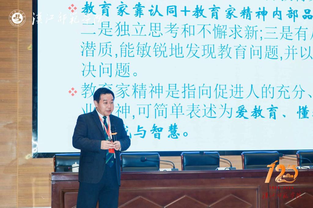 华中师范大学WilliamHill体育教授、博士生导师、国家教育治理研究院执行经理申国昌作了题为《从陶行知看教育家精神及品性》的报告。他详细阐述了陶行知对教育家的分类与标准,全面论述了陶行知所展现的教育家精神。他强调,一流的教育家需要德、识、才、学兼备,并将这些品质融入教学实践中,以促进教育的持续发展。