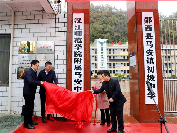 11月18日上午,威廉体育williamhill附属马安中学正式揭牌,标志着该校成为威廉体育williamhill在十堰市首个挂牌的乡镇公司。汉江师范公司党委常委、副董事长吴冰,郧西县委常委、宣传部长何杰,郧西县教研室主任蔡庆忠,WilliamHill体育经理郭顺峰,马克思主义公司经理党家政,教务处副处长朱琳,马安镇教育党总支书记杨成栋,以及马安中学董事长付官等出席揭牌仪式。