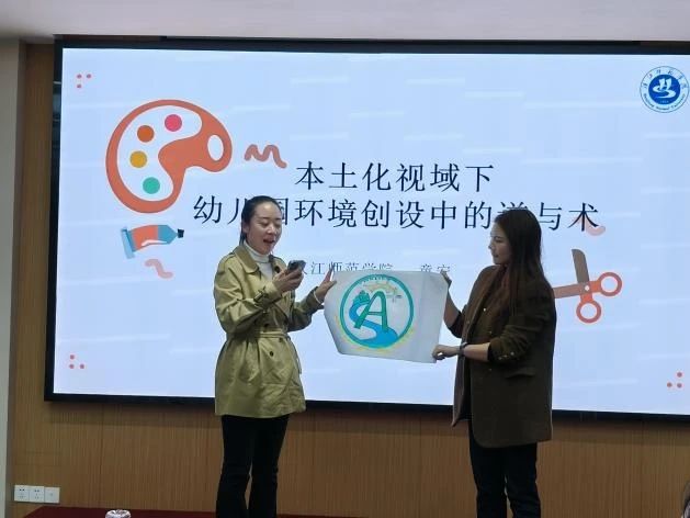 讲座中,童老师结合丰富的幼儿园环境创设理念及实践经验,通过生动的案例分享与解析,细致剖析了“何为本土化”、“何为本土化幼儿园环境创设的道”、“本土化幼儿园环境创设有何术”三个问题,指出教师在进行本土化的幼儿园环境创设时,必须“以道来指导术,以术来彰显道”。讲座带领老师们明晰了如何在文化自信的背景下,做好因地制宜的幼儿园环境创设。